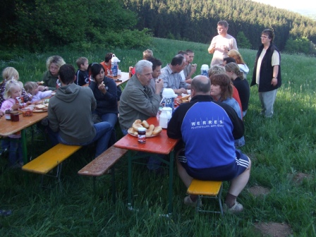 Bei bestem Wetter starteten die Wallenborner Knallköpp am Dienstag den 01. Mai 2007 zu ihrem traditionellen Maiwandertag. Über 60 Wanderbegeisterte starteten pünktlich um 8.21 Uhr am Kirchvorplatz und begaben sich auf die von unserem neuen Planerteam Edgar, Bodo und Bernd bestens vorbereitete Wanderstrecke rund um Wallenborn. Gestärkt durch ein ausgiebiges Frühstück und ein deftiges Mittagsessen vom Grill wurde die rund 16 km lange Wanderstrecke erfolgreich von allen Wanderfreunden gemeistert, Schmierstoff in allen erdenklichen Varianten machte auch die müden Knochen wieder munter (bei manchen allerdings sorgten sie genau für das Gegenteil). Hier einige Bilder zum Wandertag.