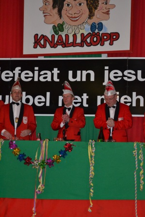 Am Samstag, den 19. Januar 2013 feierten die "Knallköpp" gemeinsam mit vielen Gästen aus Nah und Fern eine gelungene Kappensitzung in der Narrhalla Wallenborn. Sitzungspräsident Gerd Becker leitete souverän durch den Abend, der mit vielen Büttenreden außschließlich aus den eigenen Reihen und vielen tollen Tänzen den Saal zu Beben brachte. Hier die Bilder: